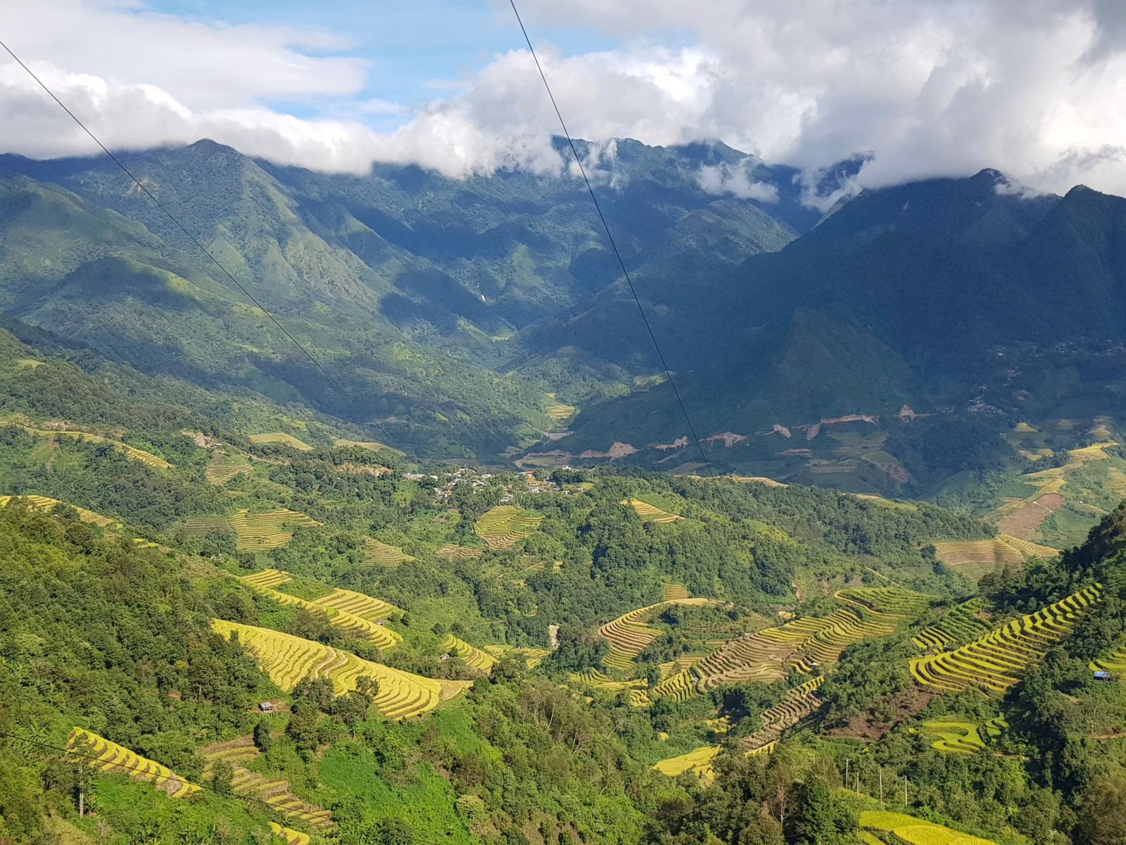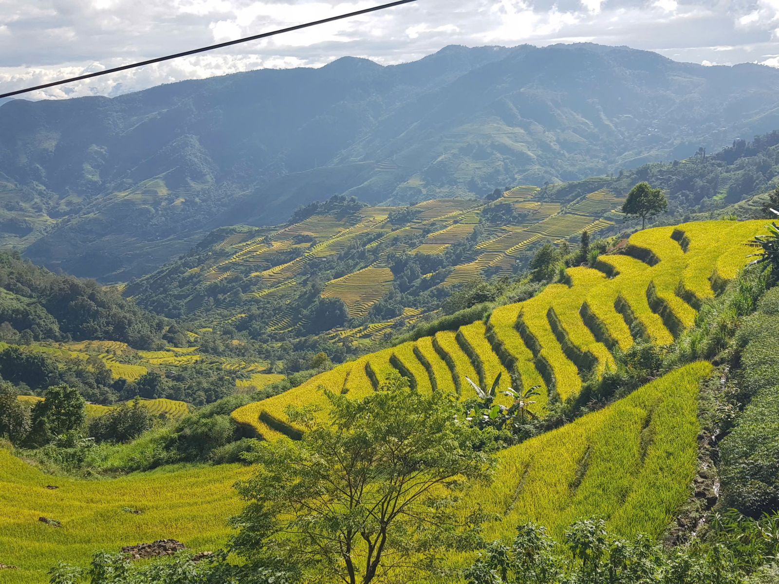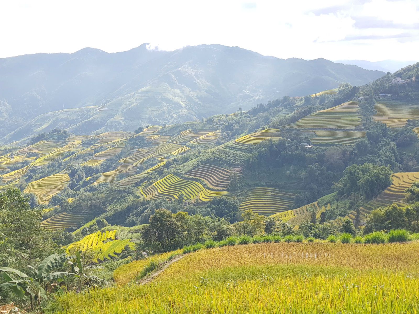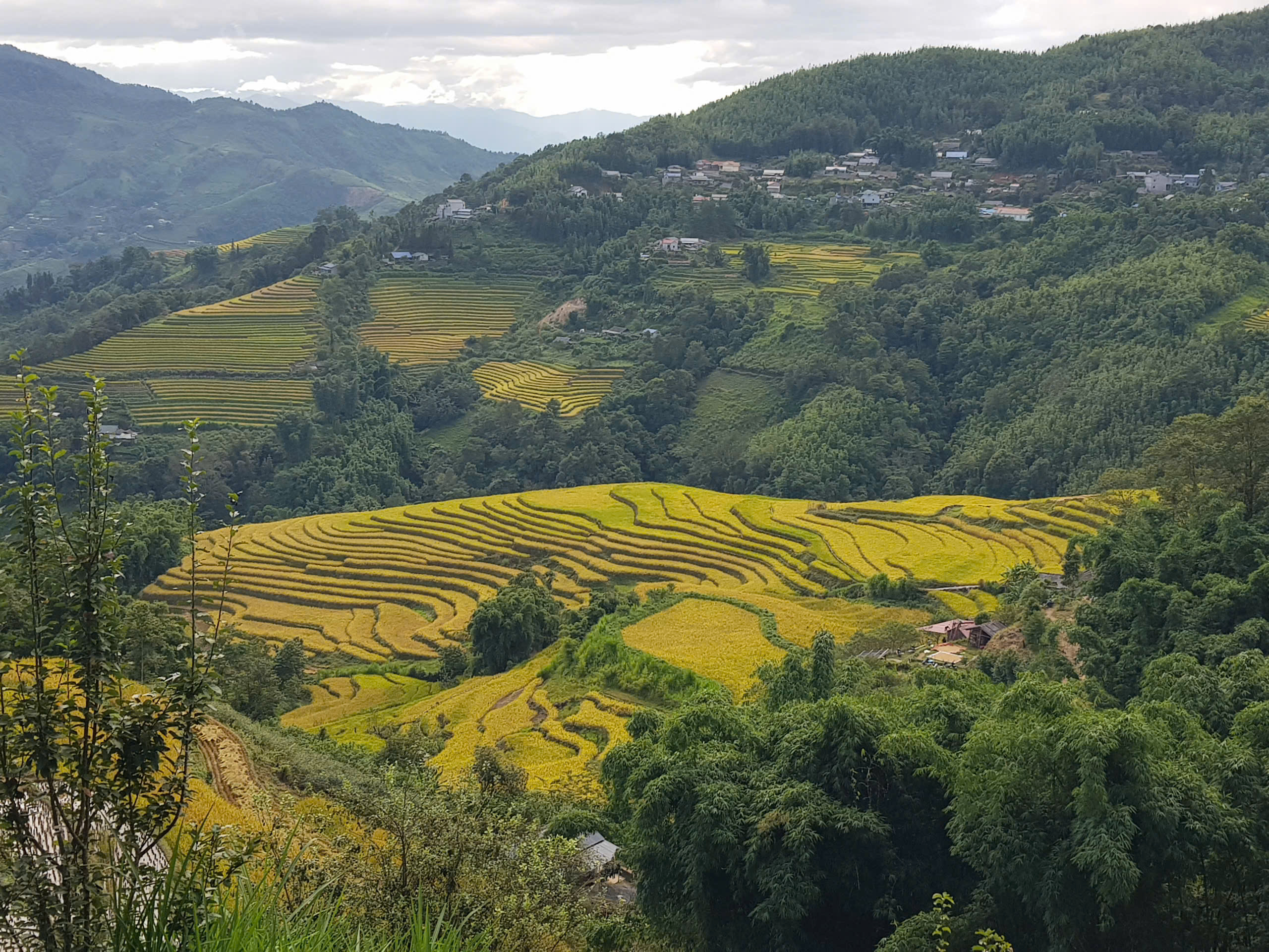 Nhìn từ xa, những thửa ruộng uốn lượn mềm mại như dải lụa vàng óng vắt ngang sườn núi. Từng bậc ruộng xếp chồng lên nhau, tầng tầng lớp lớp, tạo nên một bức tranh thiên nhiên kỳ vĩ và sống động. Khi ánh nắng chiếu xuống, cả cánh đồng như khoác lên mình tấm áo vàng rực rỡ, hòa quyện cùng màu xanh của núi rừng và mây trời bồng bềnh. Dưới chân ruộng, dòng nước trong veo chảy róc rách, phản chiếu ánh sáng lấp lánh. Xa xa, những mái nhà nhỏ ẩn hiện giữa lưng chừng núi càng làm cho khung cảnh thêm bình yên, thơ mộng. Mỗi mùa lúa chín, người dân Dào San lại nô nức gặt hái, tiếng cười nói vang vọng khắp bản làng. Ruộng bậc thang không chỉ là biểu tượng của lao động cần cù, sáng tạo mà còn là nét đẹp văn hóa độc đáo, gắn bó bao đời với đồng bào nơi đây. Ai từng đặt chân đến Dào San đều không thể quên được vẻ đẹp hùng vĩ và quyến rũ của những thửa ruộng bậc thang mùa vàng.