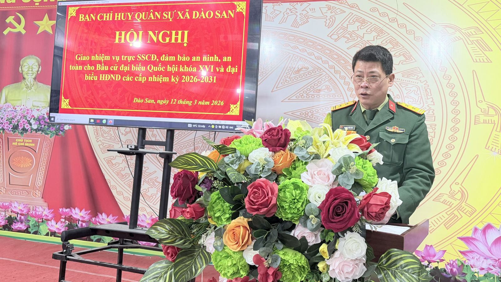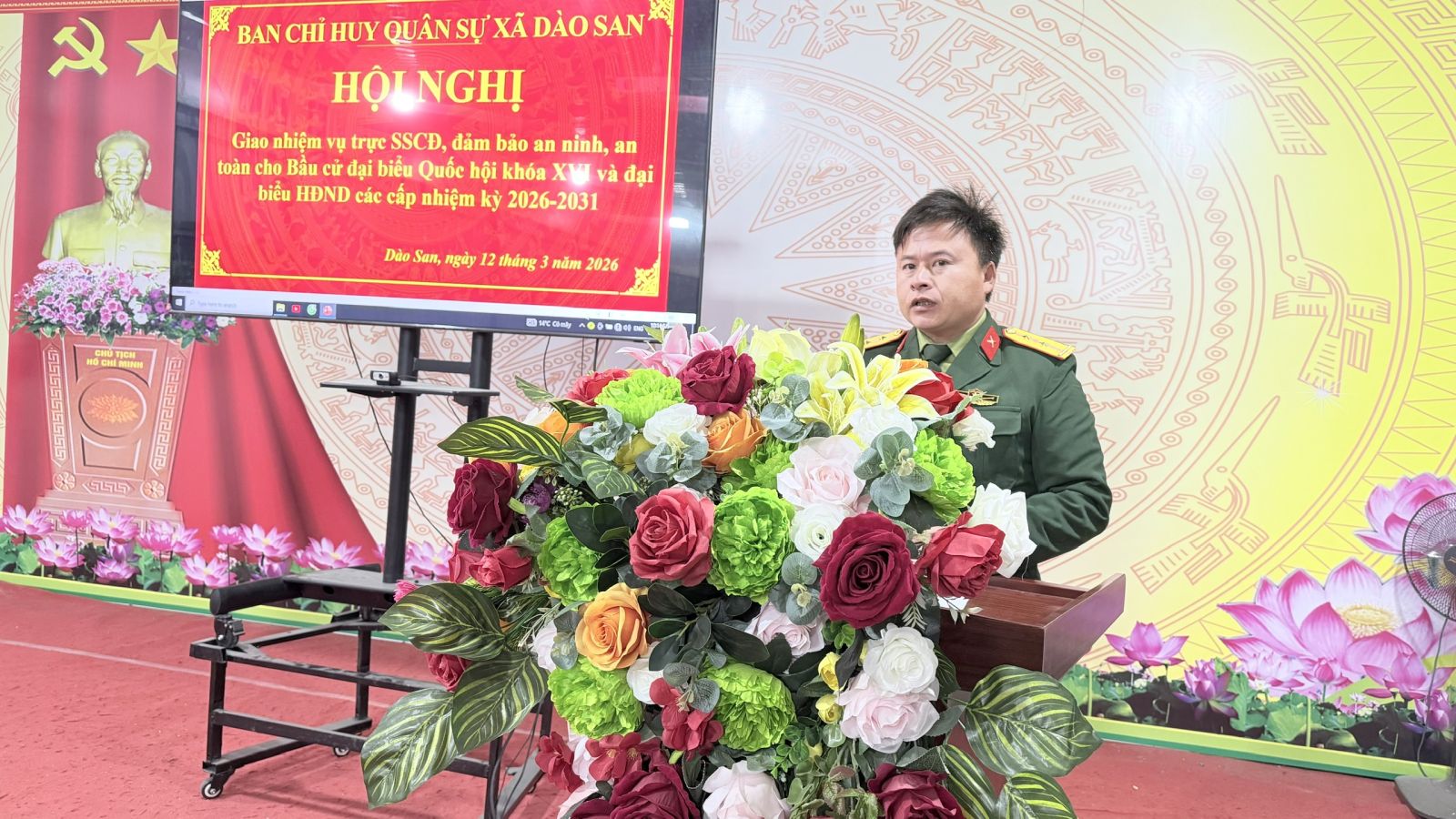 Nhằm bảo đảm an ninh, an toàn tuyệt đối cho cuộc bầu cử đại biểu Quốc hội khóa XVI và đại biểu HĐND các cấp nhiệm kỳ 2026 – 2031, Ban Chỉ huy Quân sự xã Dào San đã tổ chức Hội nghị giao nhiệm vụ trực sẵn sàng chiến đấu (SSCĐ) cho lực lượng dân quân trên địa bàn. Dự và chỉ đạo hội nghị có đồng chí Nguyễn Đình Biển – Chỉ huy trưởng Ban Chỉ huy Quân sự xã Dào San. Tham dự hội nghị còn có các đồng chí thôn đội trưởng của các bản,