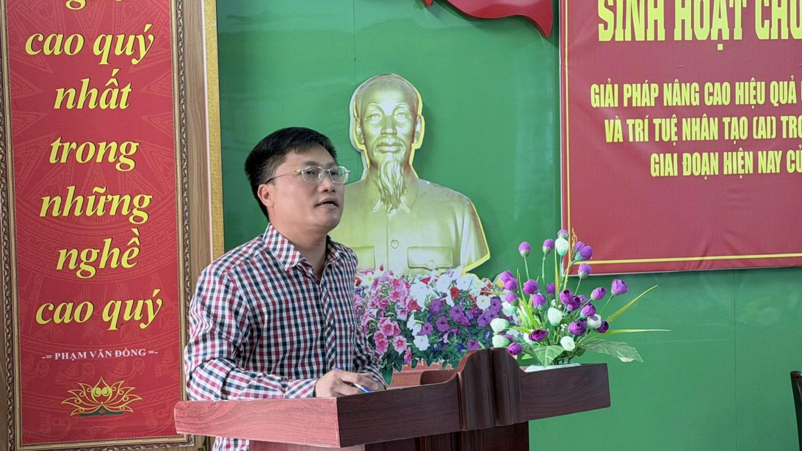 Theo báo cáo tại buổi sinh hoạt, thời gian qua nhà trường đã chủ động đẩy mạnh ứng dụng công nghệ thông tin trong hoạt động chuyên môn. Đội ngũ giáo viên tích cực sử dụng máy tính, máy chiếu, bài giảng điện tử, học liệu số và internet nhằm đổi mới phương pháp giảng dạy, nâng cao chất lượng các tiết học. Trong công tác quản lý, các phần mềm quản lý học sinh, sổ điểm điện tử, cơ sở dữ liệu ngành và các nền tảng kết nối với phụ huynh được triển khai hiệu quả, góp phần nâng cao chất lượng điều hành và quản lý nhà trường. Đáng chú ý, việc ứng dụng các công cụ trí tuệ nhân tạo vào xây dựng giáo án, thiết kế học liệu và hỗ trợ kiểm tra, đánh giá học sinh đã mở ra hướng tiếp cận mới, phù hợp với yêu cầu đổi mới giáo dục trong giai đoạn hiện nay.