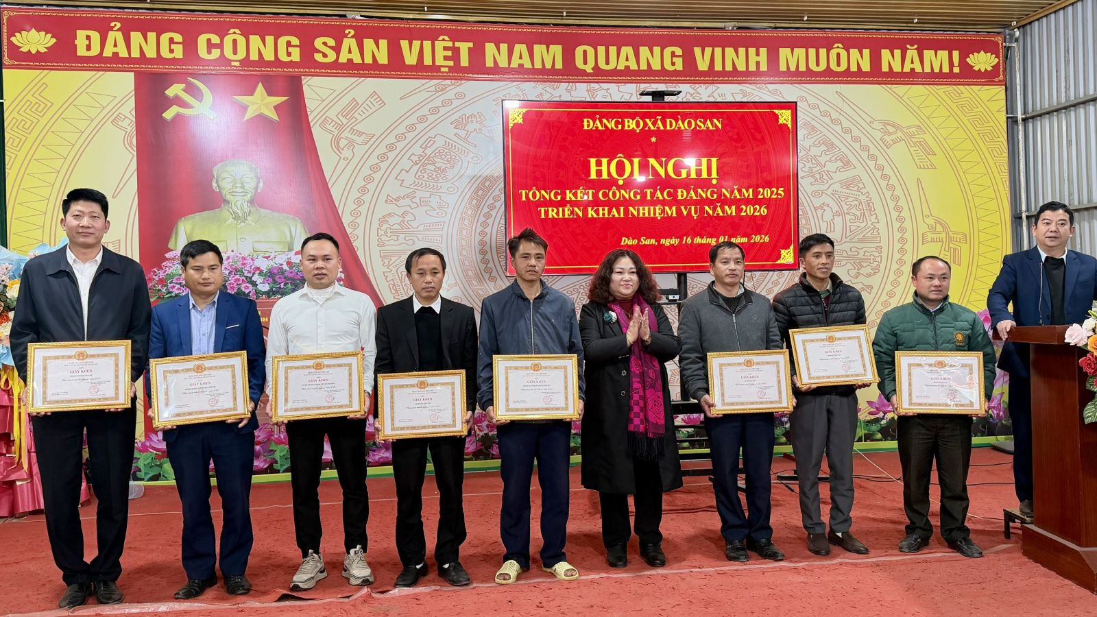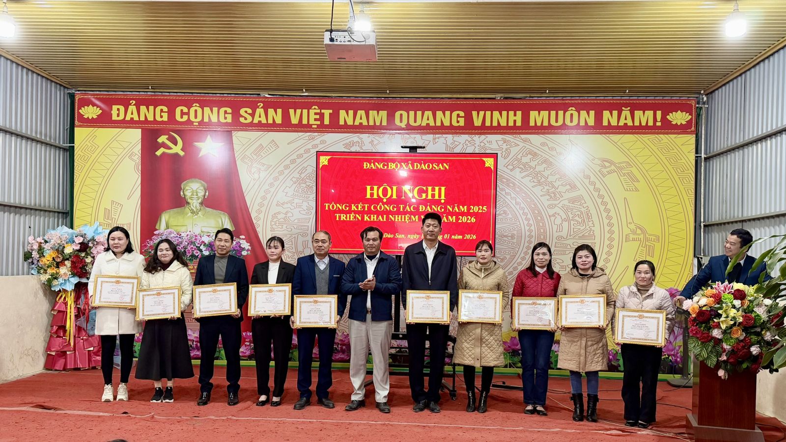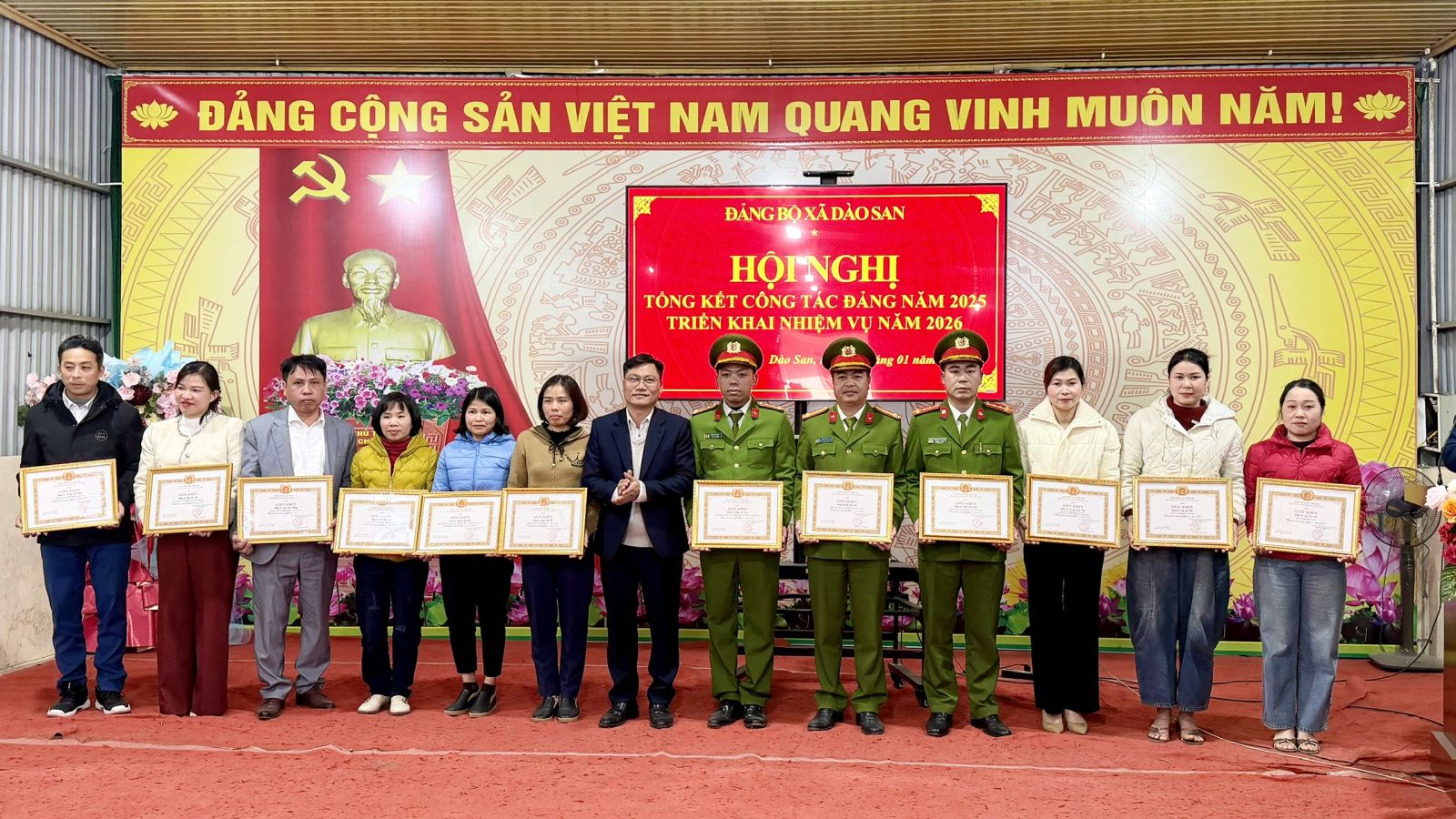 Chiều ngày 16/01/2026, Đảng bộ xã Dào San tổ chức Hội nghị tổng kết công tác Đảng năm 2025 và triển khai nhiệm vụ năm 2026. Dự và chỉ đạo Hội nghị có đồng chí Nguyễn Thị Thu Hương – Phó Chủ nhiệm Ủy ban Kiểm tra Tỉnh ủy; đồng chí Vương Thị Thu Hiền – Bí thư Đảng ủy, Chủ tịch HĐND xã; đồng chí Trương Xuân Việt – Phó Bí thư Thường trực Đảng ủy xã; đồng chí Phan Xuân Văn – Phó Bí thư Đảng ủy, Chủ tịch UBND xã. Tham dự Hội nghị còn có đại diện Thường trực HĐND, UBND, Ủy ban Mặt trận Tổ quốc Việt Nam xã; lãnh đạo các ban, ngành, đoàn thể đóng chân trên địa bàn; Bí thư các chi bộ trực thuộc Đảng ủy xã và các tập thể, cá nhân tiêu biểu có thành tích xuất sắc trong công tác Đảng năm 2025.