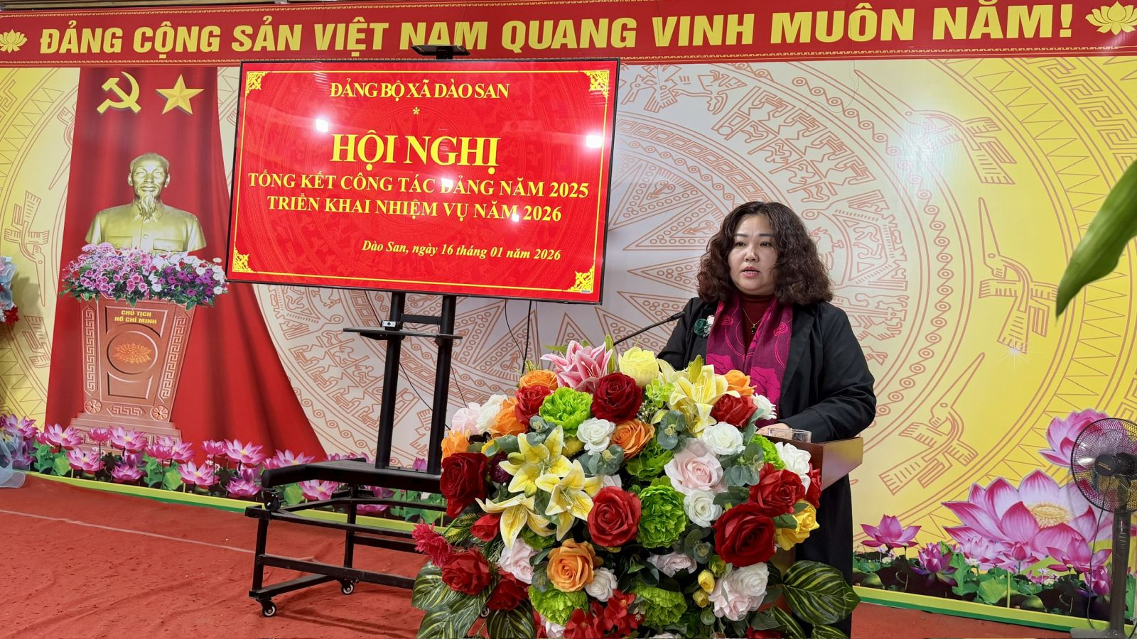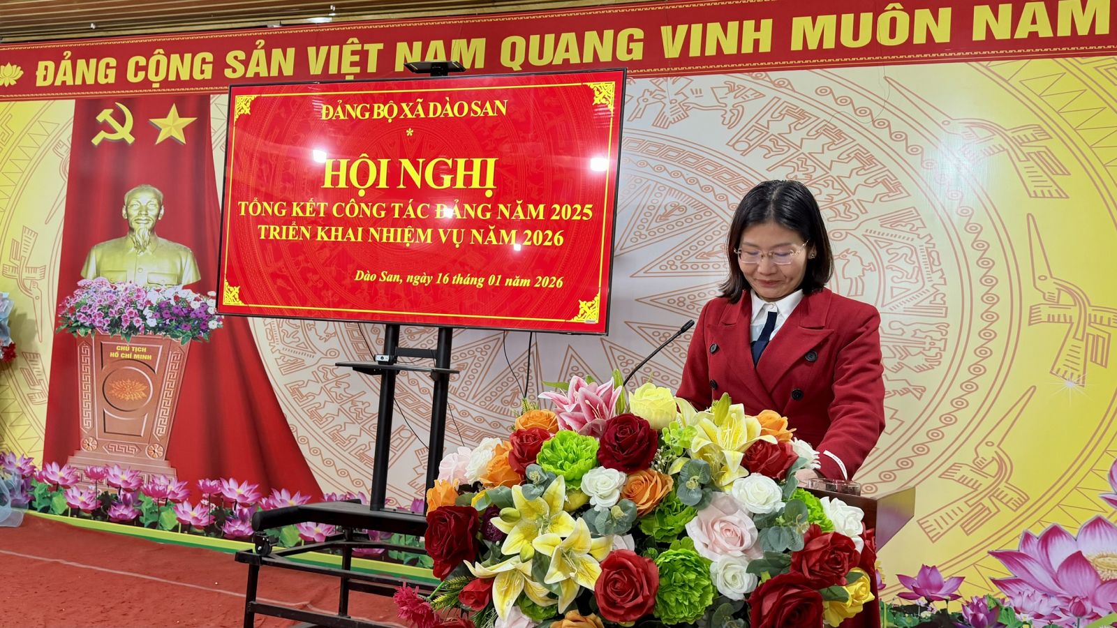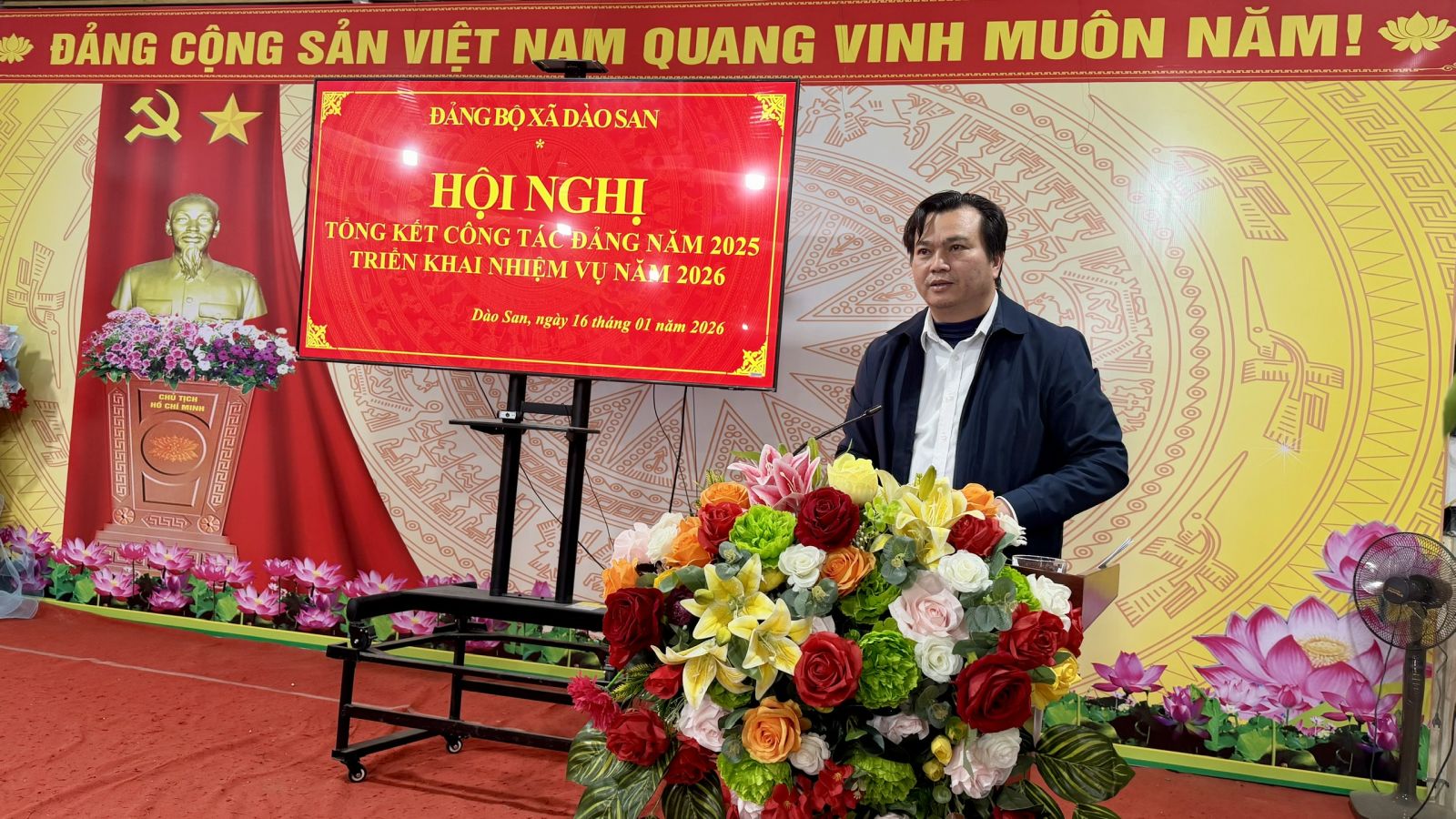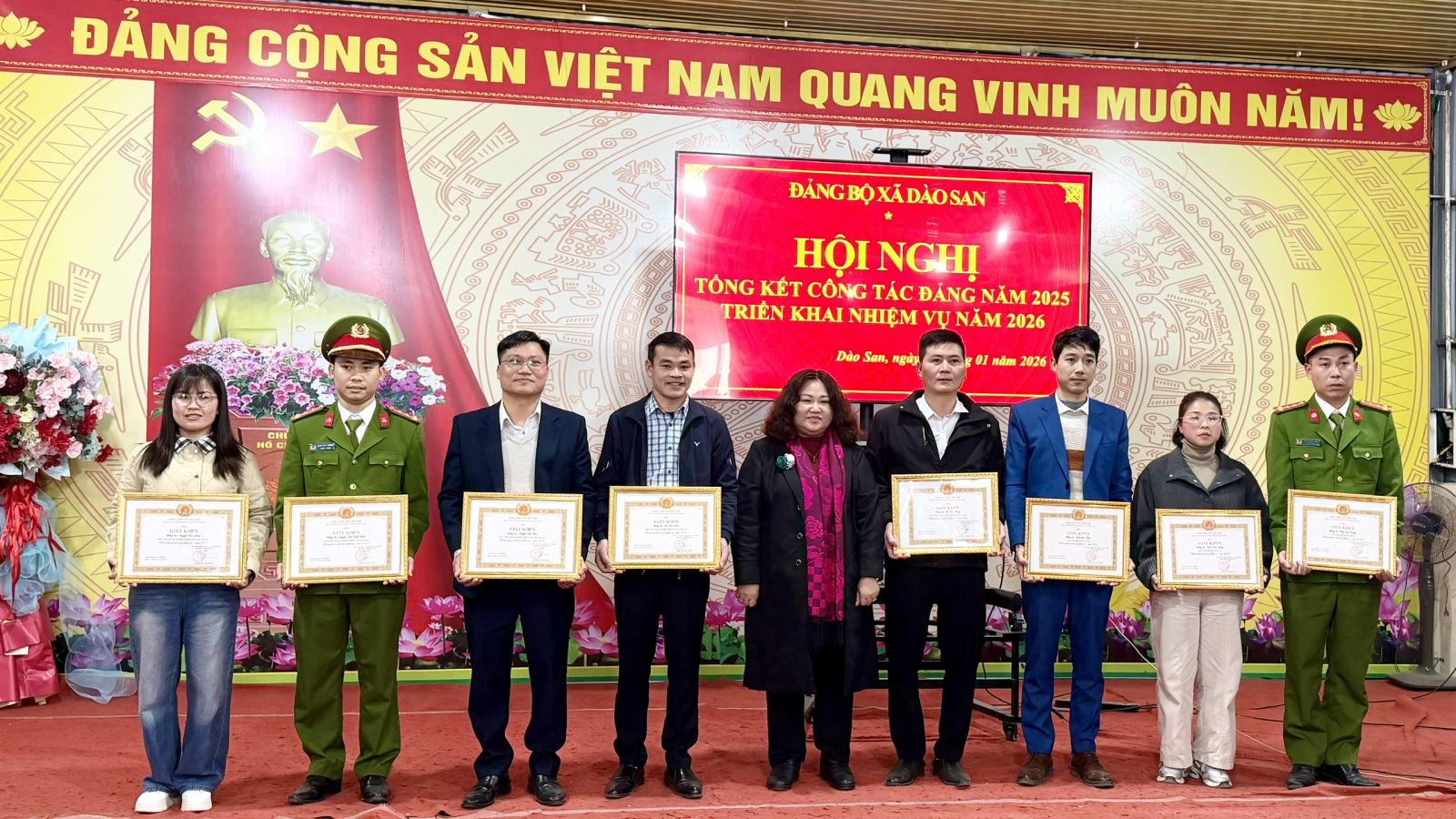 Chiều ngày 16/01/2026, Đảng bộ xã Dào San tổ chức Hội nghị tổng kết công tác Đảng năm 2025 và triển khai nhiệm vụ năm 2026. Dự và chỉ đạo Hội nghị có đồng chí Nguyễn Thị Thu Hương – Phó Chủ nhiệm Ủy ban Kiểm tra Tỉnh ủy; đồng chí Vương Thị Thu Hiền – Bí thư Đảng ủy, Chủ tịch HĐND xã; đồng chí Trương Xuân Việt – Phó Bí thư Thường trực Đảng ủy xã; đồng chí Phan Xuân Văn – Phó Bí thư Đảng ủy, Chủ tịch UBND xã. Tham dự Hội nghị còn có đại diện Thường trực HĐND, UBND, Ủy ban Mặt trận Tổ quốc Việt Nam xã; lãnh đạo các ban, ngành, đoàn thể đóng chân trên địa bàn; Bí thư các chi bộ trực thuộc Đảng ủy xã và các tập thể, cá nhân tiêu biểu có thành tích xuất sắc trong công tác Đảng năm 2025.