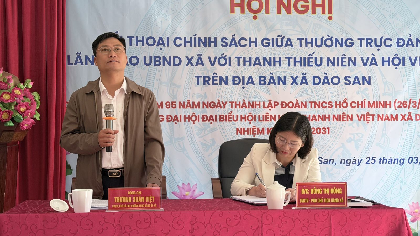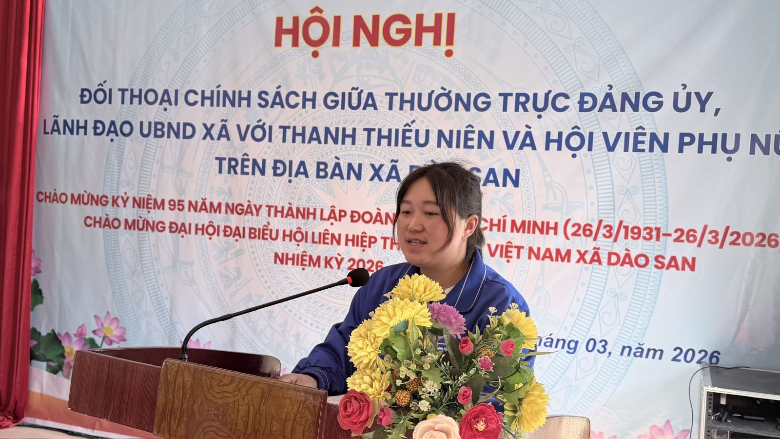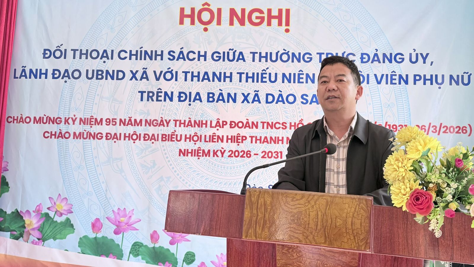 Nhân kỷ niệm 95 năm Ngày thành lập Đoàn TNCS Hồ Chí Minh (26/3/1931 – 26/3/2026), sáng 25/3 xã Dào San đã tổ chức Hội nghị tọa đàm và đối thoại trực tiếp giữa lãnh đạo Thường trực Đảng ủy, UBND xã với đoàn viên, thanh niên và hội viên phụ nữ trên địa bàn. Dự hội nghị có đồng chí Trương Xuân Việt – Phó Bí thư Thường trực Đảng ủy xã; các đồng chí trong Thường trực HĐND, UBND, Ủy ban MTTQ Việt Nam xã; đại diện Hội Liên hiệp Phụ nữ tỉnh Lai Châu; đại diện Plan International; cùng đại diện các ban, ngành, đoàn thể và đông đảo đoàn viên, thanh niên, hội viên phụ nữ tiêu biểu.
