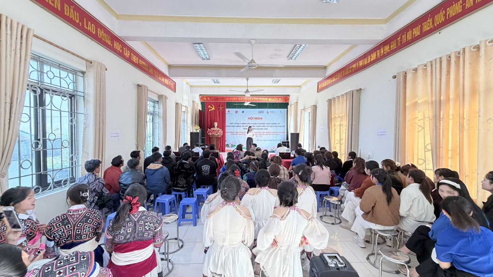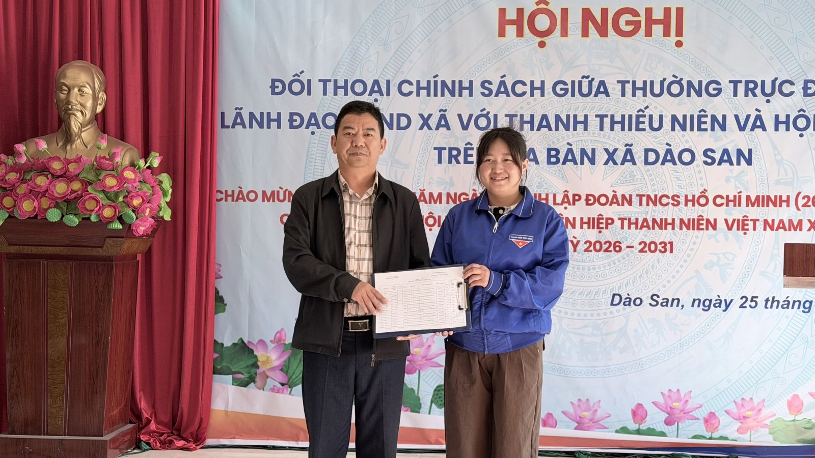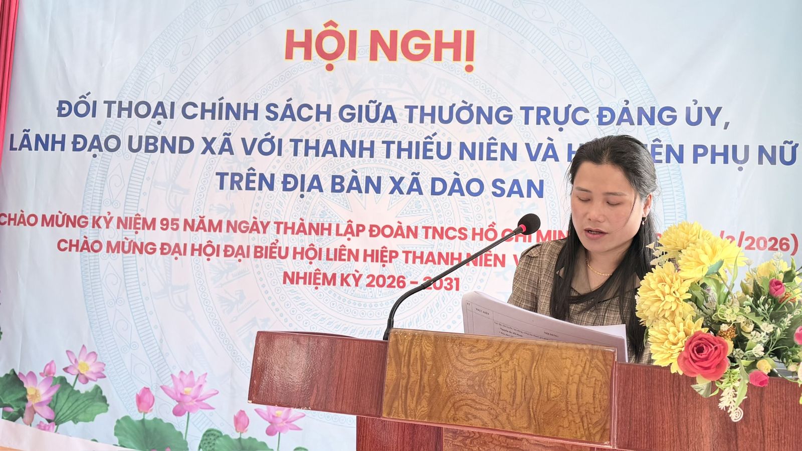 Nhân kỷ niệm 95 năm Ngày thành lập Đoàn TNCS Hồ Chí Minh (26/3/1931 – 26/3/2026), sáng 25/3 xã Dào San đã tổ chức Hội nghị tọa đàm và đối thoại trực tiếp giữa lãnh đạo Thường trực Đảng ủy, UBND xã với đoàn viên, thanh niên và hội viên phụ nữ trên địa bàn. Dự hội nghị có đồng chí Trương Xuân Việt – Phó Bí thư Thường trực Đảng ủy xã; các đồng chí trong Thường trực HĐND, UBND, Ủy ban MTTQ Việt Nam xã; đại diện Hội Liên hiệp Phụ nữ tỉnh Lai Châu; đại diện Plan International; cùng đại diện các ban, ngành, đoàn thể và đông đảo đoàn viên, thanh niên, hội viên phụ nữ tiêu biểu.