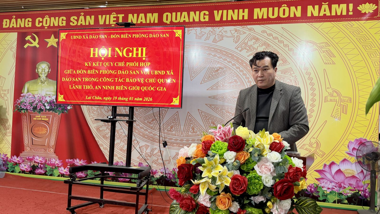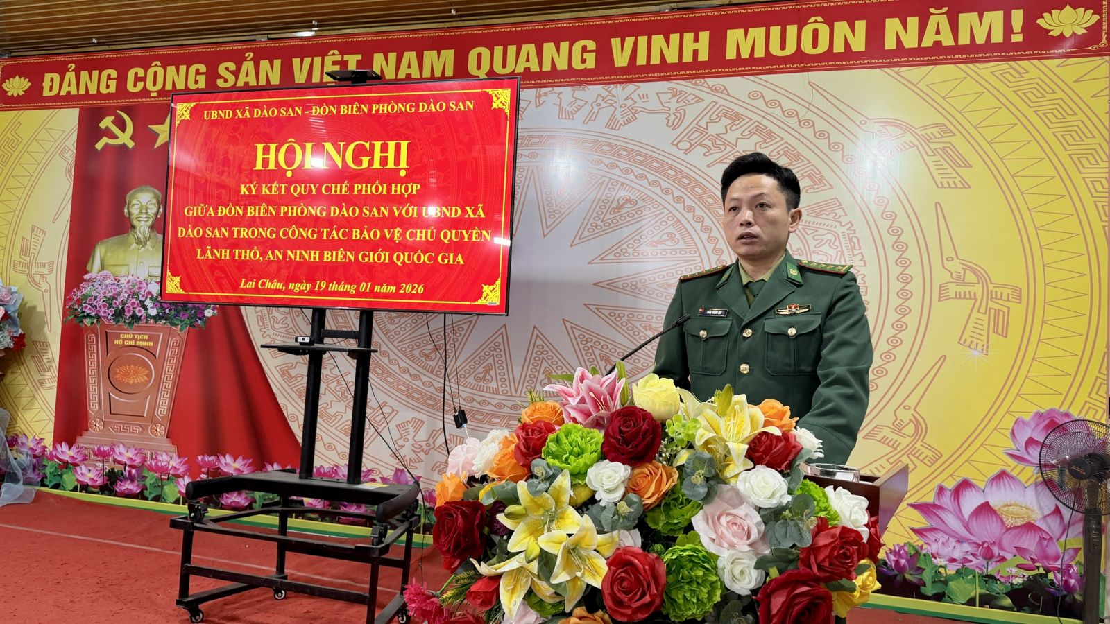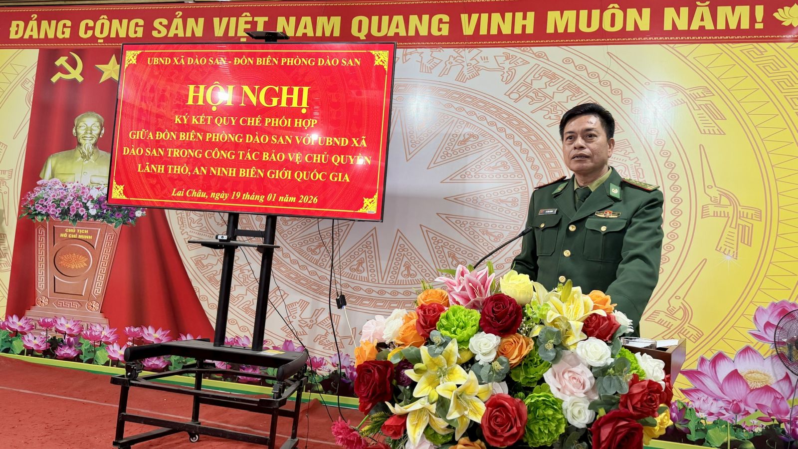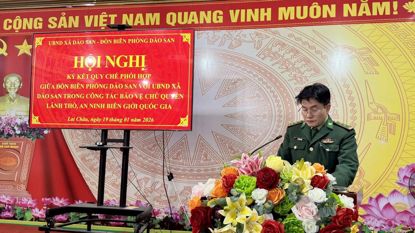 Sáng ngày 19/01/2026, trong không khí thi đua sôi nổi chào mừng Đại hội đại biểu toàn quốc lần thứ XIV của Đảng, Đồn Biên phòng Dào San phối hợp với UBND xã Dào San tổ chức Hội nghị ký kết Quy chế phối hợp. Đây là hoạt động có ý nghĩa quan trọng, góp phần tạo cơ sở thống nhất trong lãnh đạo, chỉ đạo và tổ chức thực hiện các nhiệm vụ quản lý, bảo vệ vững chắc chủ quyền lãnh thổ, an ninh biên giới quốc gia, đồng thời giữ vững ổn định chính trị, trật tự an toàn xã hội trên địa bàn xã trong tình hình mới. Dự và chỉ đạo Hội nghị có đồng chí Đại tá Lê Công Thành – Phó Chính ủy Ban Chỉ huy Bộ đội Biên phòng tỉnh, cùng đại diện lãnh đạo các phòng, ban, cơ quan chuyên môn thuộc Ban Chỉ huy BĐBP tỉnh.