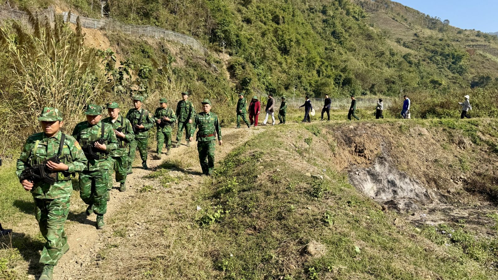 Ngay sau Hội nghị, các đại biểu đã tổ chức tuần tra thực địa đường biên, mốc giới, kiểm tra hiện trạng khu vực từ Mốc 68(2) đến Mốc 69(3). Hoạt động không chỉ góp phần rà soát, đánh giá thực trạng tuyến biên giới, mà còn là dịp để tuyên truyền, nâng cao nhận thức, trách nhiệm của cán bộ, chiến sĩ và các lực lượng tham gia trong công tác bảo vệ chủ quyền lãnh thổ, an ninh biên giới quốc gia.
