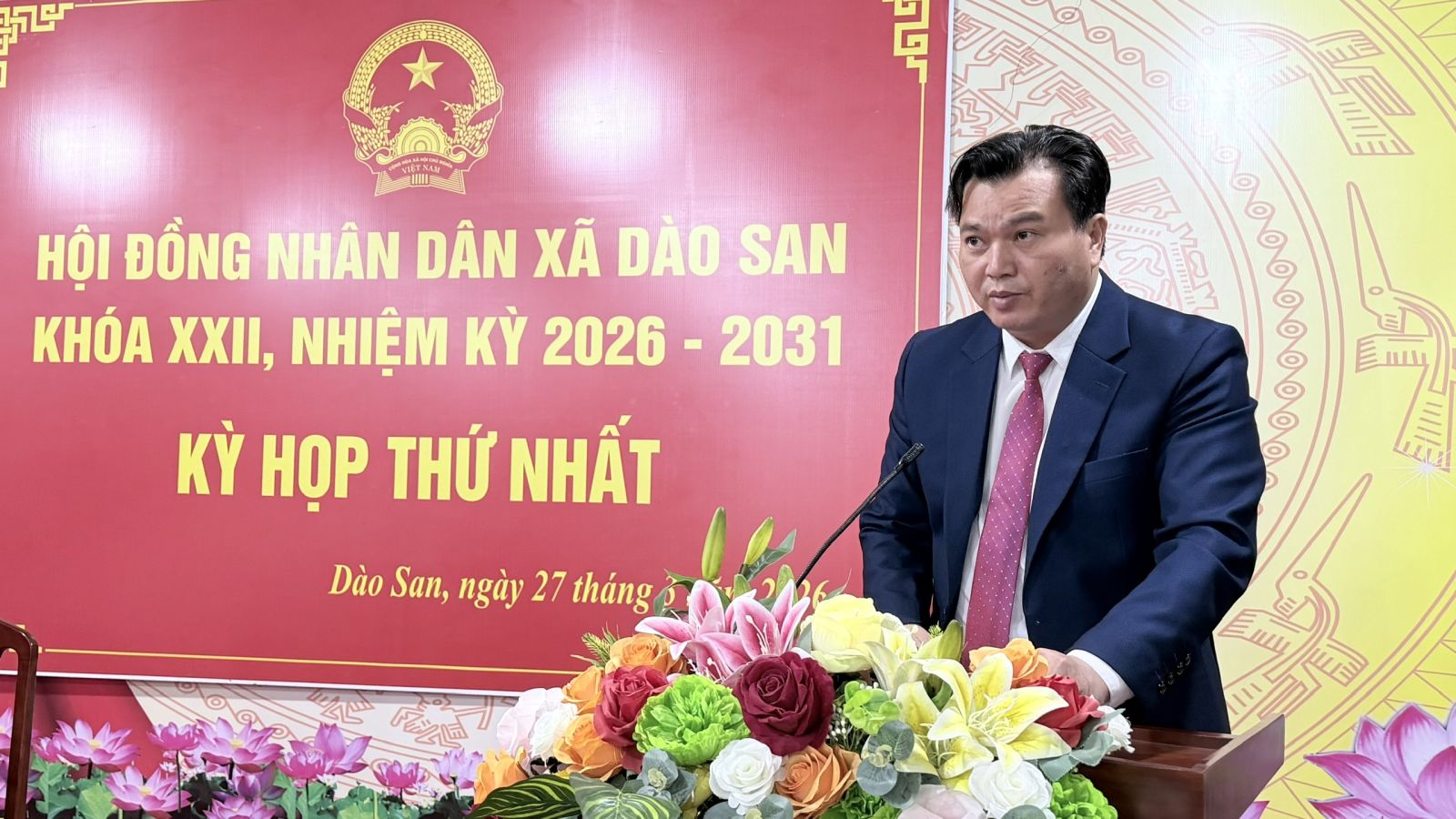 Sáng ngày 27/3, Hội đồng nhân dân (HĐND) xã Dào San khóa XXII, nhiệm kỳ 2026–2031 long trọng tổ chức Kỳ họp thứ nhất nhằm kiện toàn tổ chức bộ máy chính quyền địa phương sau cuộc bầu cử đại biểu Quốc hội khóa XVI và đại biểu HĐND các cấp nhiệm kỳ 2026–2031, đồng thời xem xét, quyết định các nội dung quan trọng thuộc thẩm quyền. Đây là kỳ họp có ý nghĩa đặc biệt quan trọng, mở đầu cho chặng đường hoạt động của chính quyền địa phương trong nhiệm kỳ mới. Dự và chỉ đạo kỳ họp có đồng chí Tống Thanh Bình - Ủy viên Ban Thường vụ Tỉnh ủy, Phó Chủ tịch Thường trực Ủy ban MTTQ Việt Nam tỉnh Lai Châu. Về phía xã Dào San có các đồng chí Thường trực Đảng ủy, Lãnh đạo UBND, Ủy ban MTTQ Việt nam xã; đại diện các ban, ngành, đoàn thể, cơ quan, đơn vị và các đại biểu HĐND xã khóa XXII. Đồng chí Vương Thị Thu Hiền – Bí thư Đảng ủy, Chủ tịch HĐND xã chủ Tọa kỳ họp