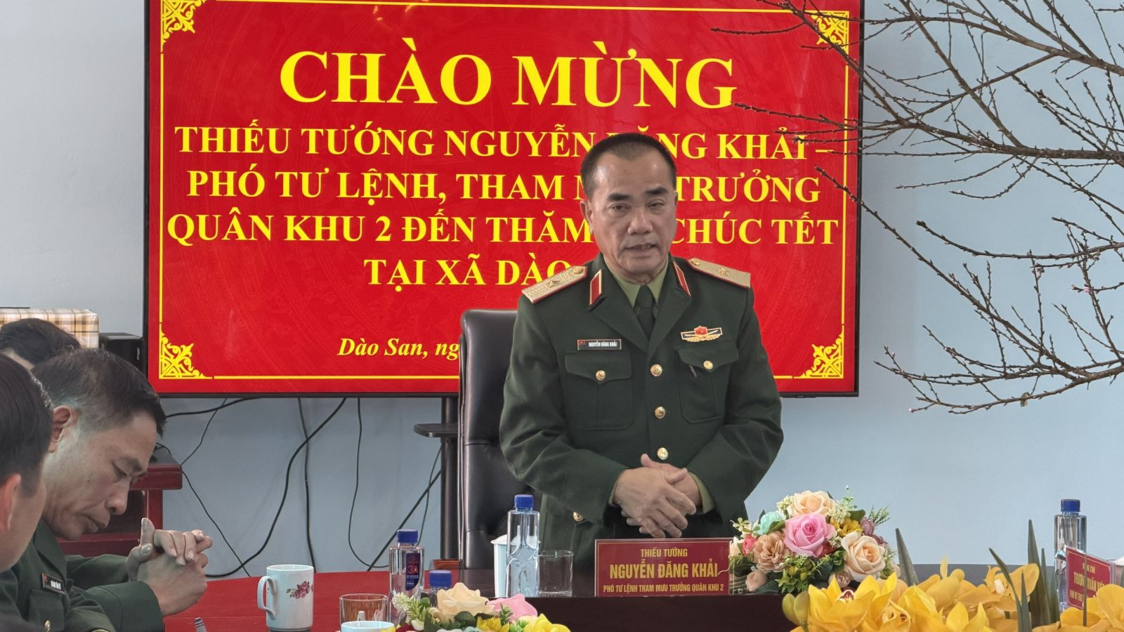 Phát biểu tại buổi làm việc, Thiếu tướng Nguyễn Đăng Khải ghi nhận và biểu dương những nỗ lực của Đảng bộ, chính quyền, lực lượng vũ trang và Nhân dân xã Dào San trong việc thực hiện hiệu quả các nhiệm vụ phát triển kinh tế – xã hội gắn với củng cố quốc phòng – an ninh, xây dựng hệ thống chính trị cơ sở ngày càng vững mạnh.