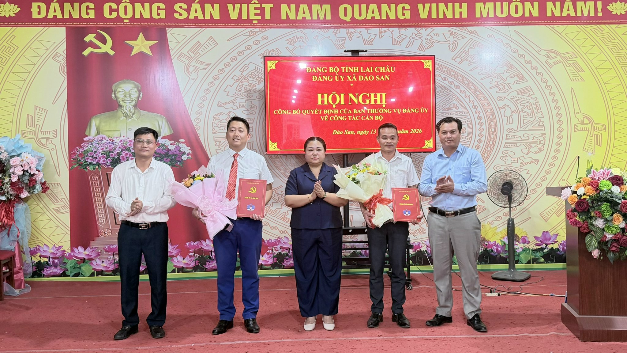 Chiều ngày 13/4. Đảng ủy xã Dào San tổ chức Hội nghị công bố các quyết định về công tác cán bộ. Dự hội nghị có các đồng chí: Vương Thị Thu Hiền – Bí thư Đảng ủy, Chủ tịch HĐND xã; Trương Xuân Việt – Phó Bí thư Thường trực Đảng ủy xã; Phan Xuân Văn – Phó Bí thư Đảng ủy, Chủ tịch UBND xã. Cùng tham dự còn có lãnh đạo Thường trực HĐND, UBND, Ủy ban MTTQ Việt Nam xã và các đồng chí Ủy viên Ban Chấp hành Đảng bộ xã.