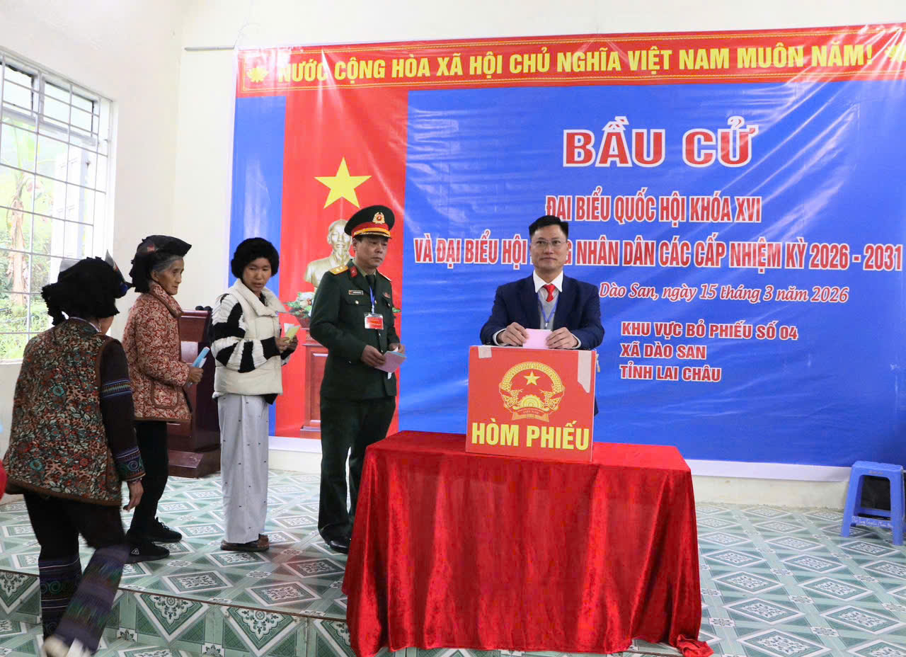 Sáng 15/3, hòa chung không khí rộn ràng của ngày hội bầu cử trên cả nước, đông đảo cử tri xã Dào San đã nô nức đến các điểm bỏ phiếu từ sớm để thực hiện quyền và nghĩa vụ công dân, bầu đại biểu Quốc hội khóa XVI và đại biểu HĐND các cấp nhiệm kỳ 2026 – 2031. Với sự chuẩn bị chu đáo, nghiêm túc của cấp ủy, chính quyền địa phương, các khu vực bỏ phiếu được tổ chức trang trọng, đúng quy trình, bảo đảm dân chủ, an toàn, tạo nên không khí phấn khởi, góp phần để ngày bầu cử thực sự trở thành ngày hội lớn của Nhân dân các dân tộc trên địa bàn xã.