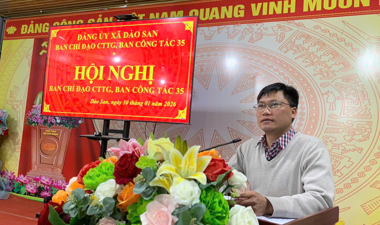 Trên cơ sở các ý kiến thảo luận và kết luận tại hội nghị, các giải pháp cụ thể, sát với tình hình thực tế địa phương đã được xác định, tạo nền tảng quan trọng để công tác tôn giáo và hoạt động của Ban Công tác 35 tiếp tục được triển khai hiệu quả, đồng bộ, góp phần giữ vững ổn định chính trị, củng cố khối đại đoàn kết toàn dân và phục vụ sự phát triển bền vững của xã Dào San trong năm 2026.