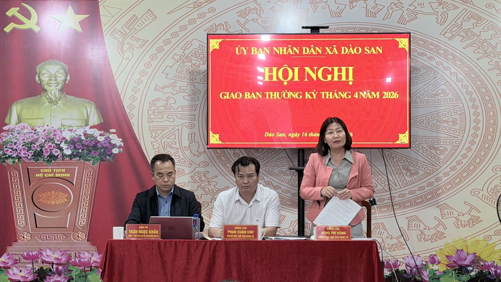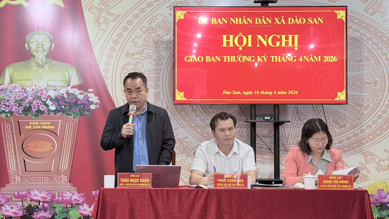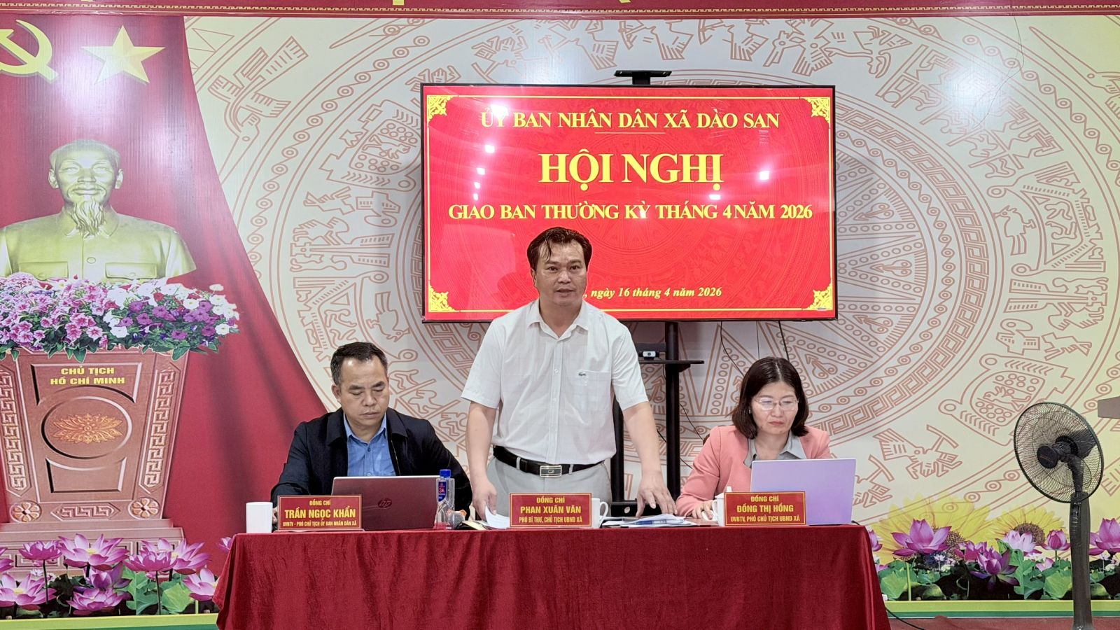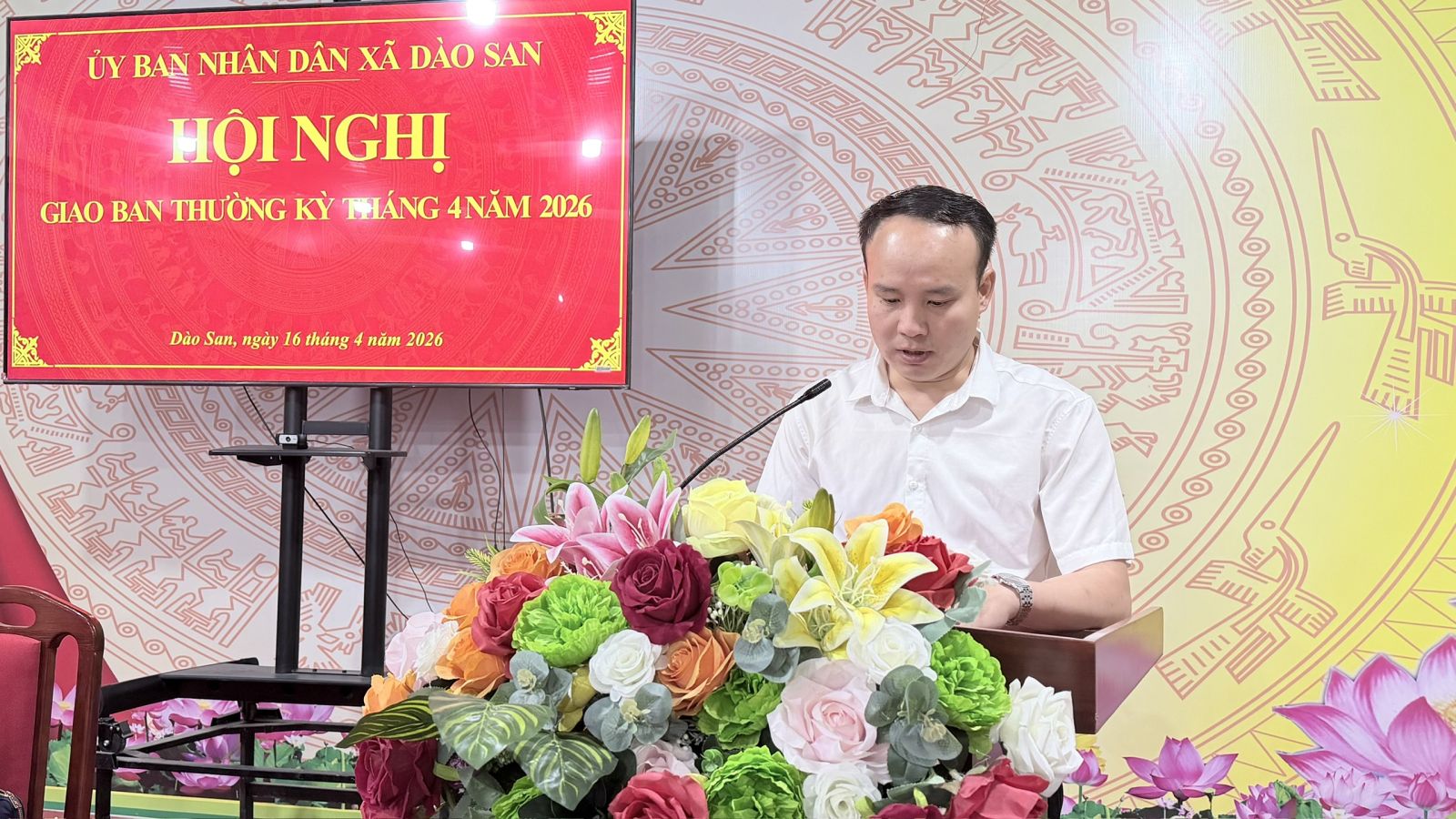 Hội nghị giao ban thường kỳ tháng 4 năm 2026 là dịp quan trọng để UBND xã Dào San rà soát, đánh giá kết quả thực hiện nhiệm vụ, tạo sự thống nhất cao trong toàn hệ thống chính trị, góp phần thực hiện thắng lợi nhiệm vụ phát triển kinh tế - xã hội năm 2026 và Nghị quyết Đại hội Đảng bộ xã.