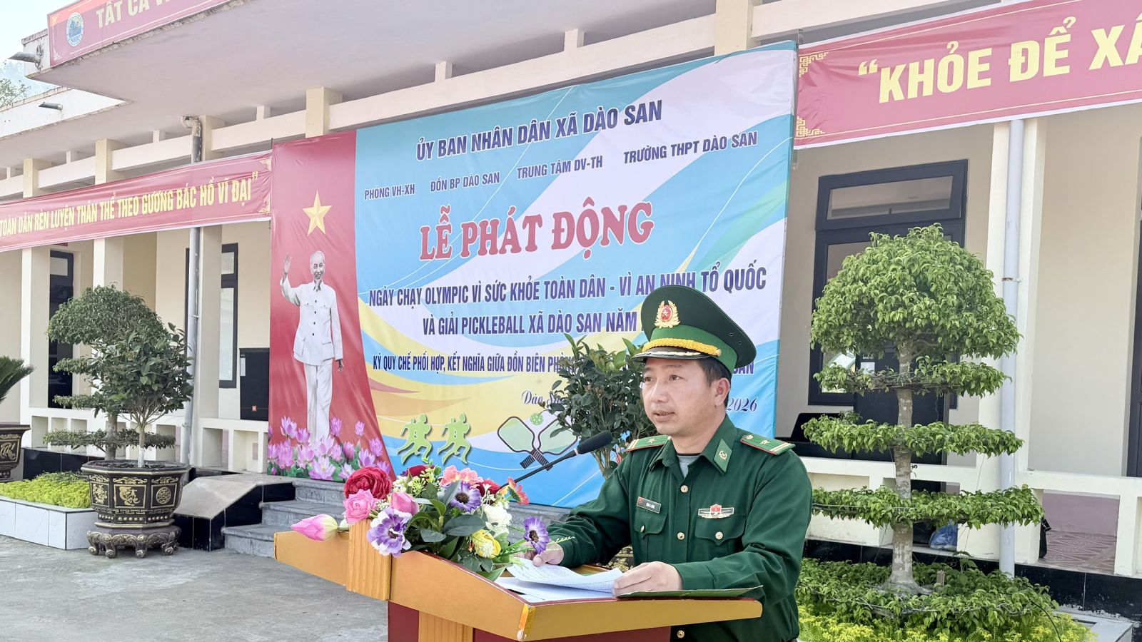 Sáng ngày 20/3 hòa chung không khí thi đua sôi nổi chào mừng các sự kiện chính trị - xã hội của địa phương, hướng tới kỷ niệm 95 năm Ngày thành lập Đoàn TNCS Hồ Chí Minh và 80 năm Ngày Thể thao Việt Nam, UBND xã Dào San đã tổ chức Lễ phát động Ngày chạy Olympic vì sức khỏe toàn dân gắn với khai mạc Giải Pickleball năm 2026. Hoạt động thu hút sự tham gia của đông đảo cán bộ, chiến sĩ, giáo viên, học sinh và nhân dân trên địa bàn, tạo nên không khí sôi nổi, lan tỏa tinh thần rèn luyện thể dục thể thao sâu rộng trong cộng đồng. Tham dự buổi lễ có đồng chí Đồng Thị Hồng - Ủy viên BTV phó chủ tịch UBND xã, đồng chí Vàng A Chỉnh - Ủy viên BTV Phó chủ tịch HĐND xã, Lãnh đạo, cán bộ chiến sĩ Đồn Biên phòng Dào San; Ban Giám hiệu Trường THPT Dào San cùng các lực lượng và nhân dân, các em học sinh .